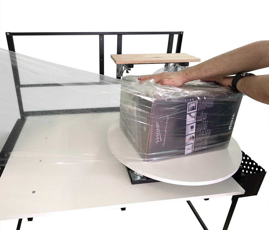 The Dana packing station will make the process of packing goods easy, fast and economical. Equipped with a removable rotating platform, this model expands your possibilities for packing boxes and crates. Two-in-one combinations: a packing table and a mini palletizer.